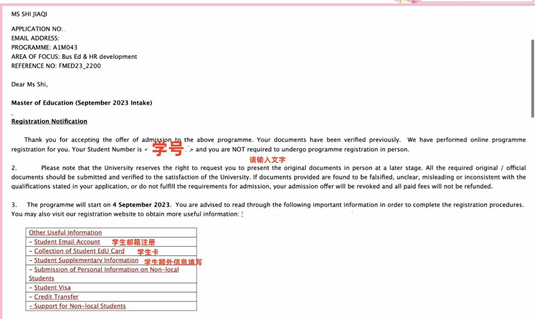 学校也会在邮件里写明学生就读专业的信息,可以提前了解一下~
