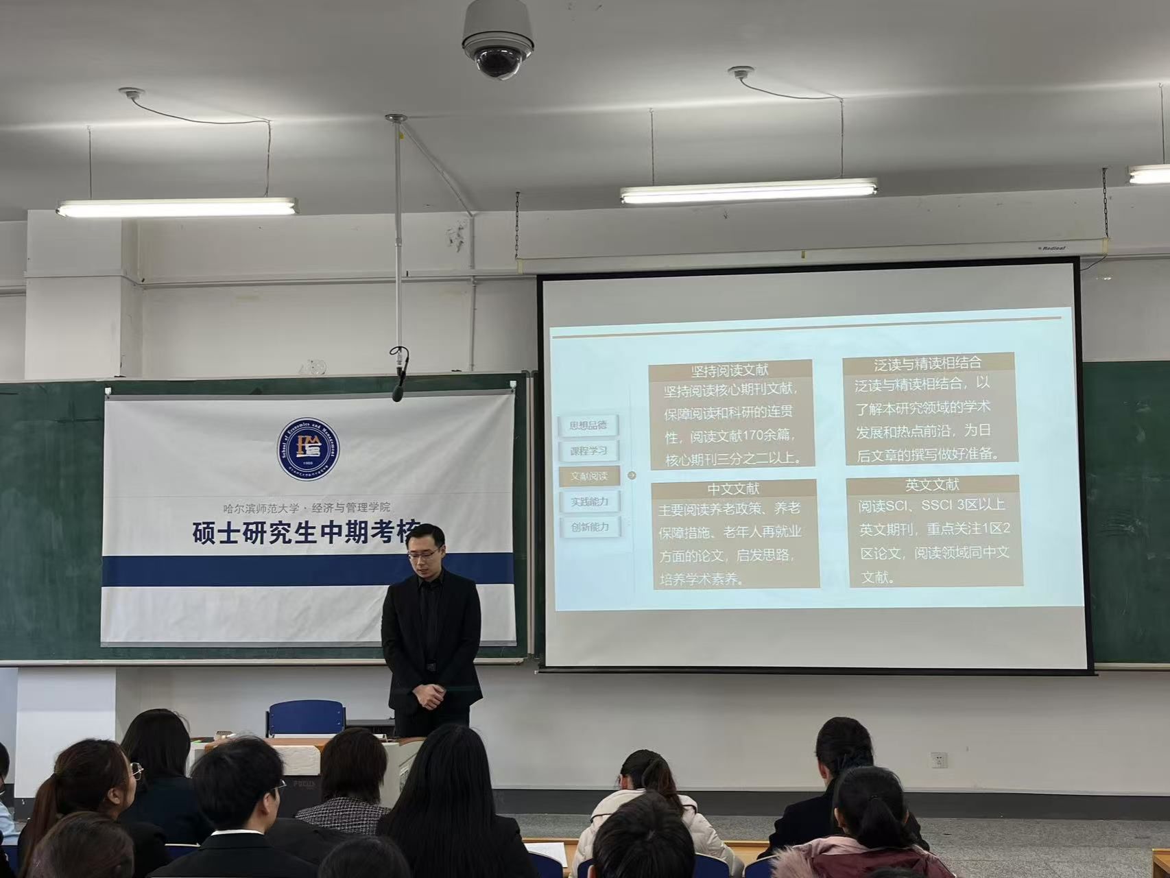 于2024年11月20日下午在崇师楼C201至C206六间教室顺利举行2023级研究生的中期考核答辩。此次答辩涵盖了工商管理学、公共管理学、应用经济学学硕以及公共管理专硕,共有80名研究生参加。他们就自己在研究生学习阶段的思想品德、实践能力、创新能力等五个方面进行了详细汇报。