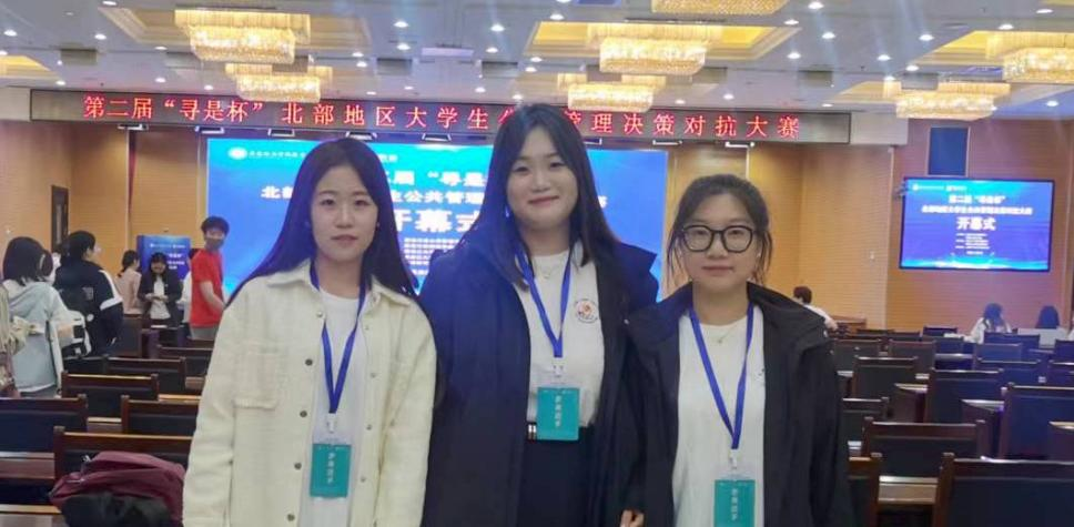 公共管理系教师刘岩芳、张燕带领金花淑、孙双、宋奕静3名学生参加了第二届“寻是杯”北部地区大学生公共管理决策对抗大赛。