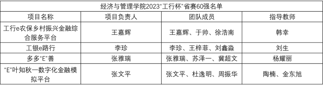 4个项目经过激烈角逐,成功挺进省赛60强,创此项赛事佳绩!他们是: