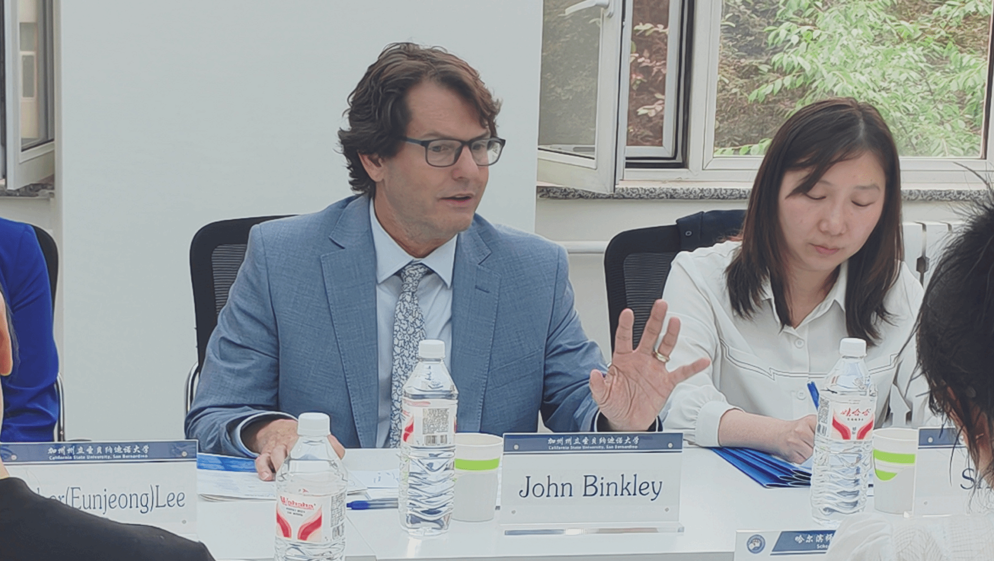 《中美人才培养计划》121项目的办学历程及培养成效,John Binkley介绍了圣贝纳迪诺分校作为加州州立大学系统重要成员的发展历程与优势专业。