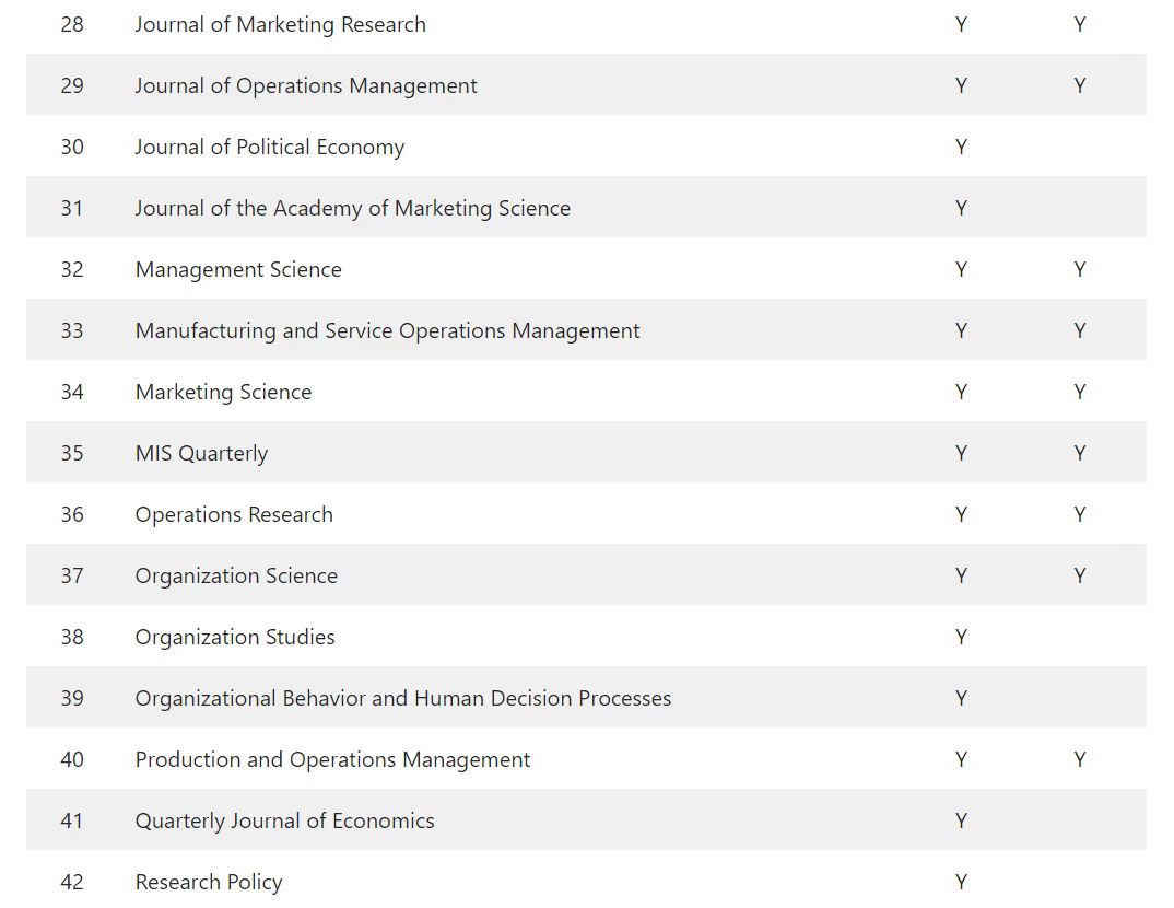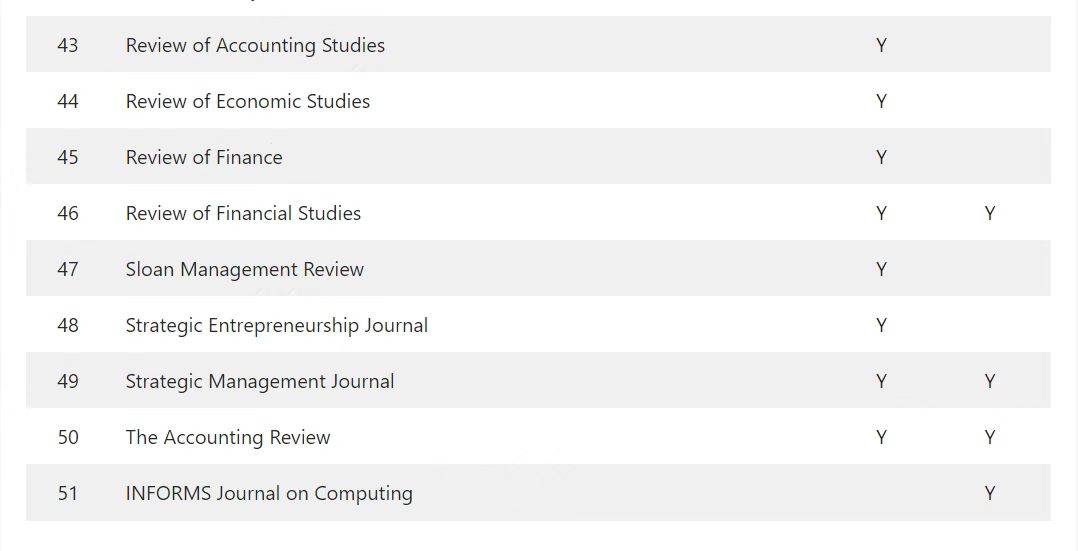 FT50期刊与UTD24期刊分别是英国《金融时报》(Financial Times)与美国德克萨斯大学达拉斯分校(UT Dallas)用以编制国际商学院排行榜的顶级商业期刊。