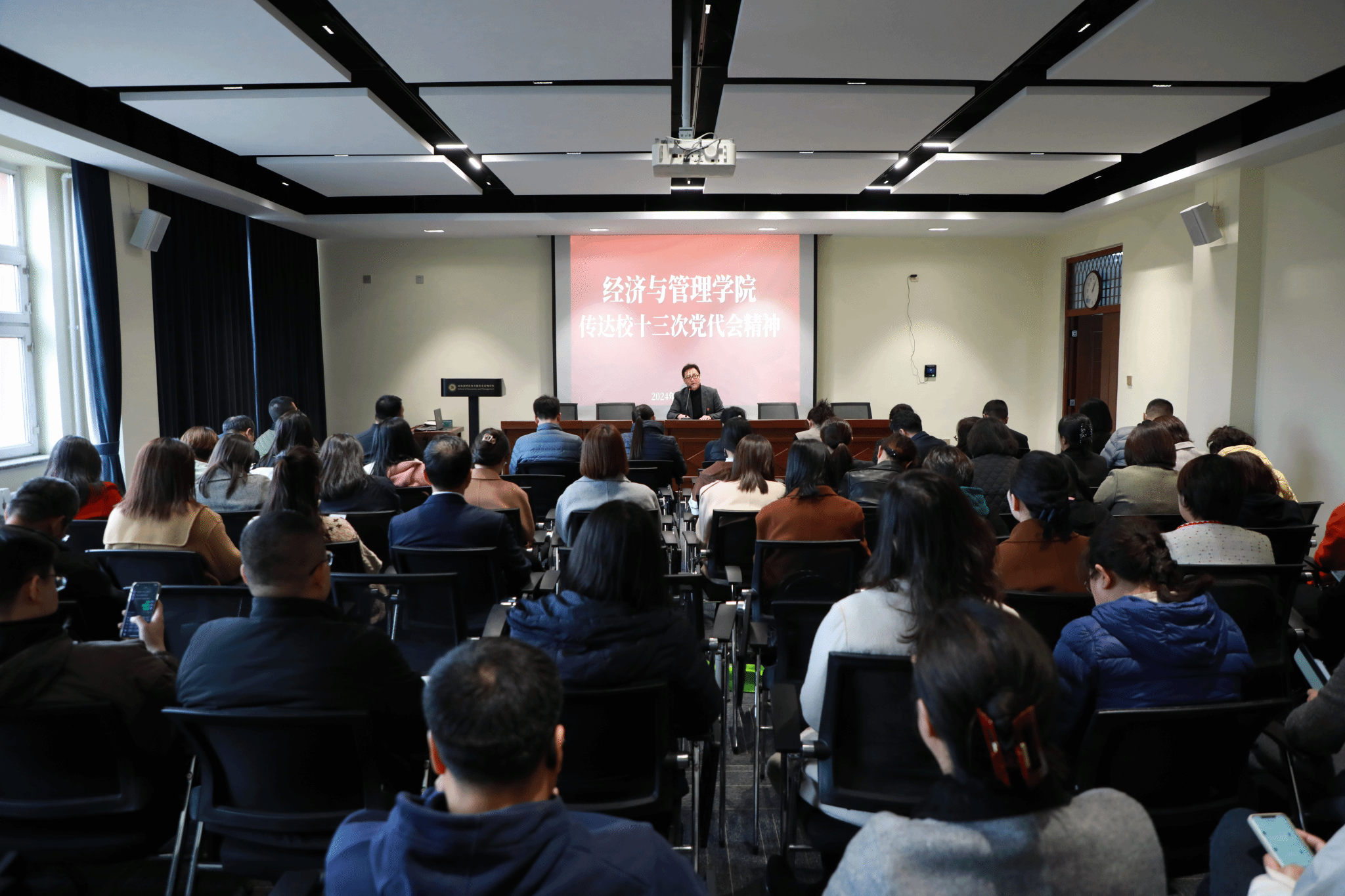 召开教职工大会,传达学习中共哈师大第十三次党代会精神。学院党委书记蒙国军主持会议并讲话,全院教职工参加会议。