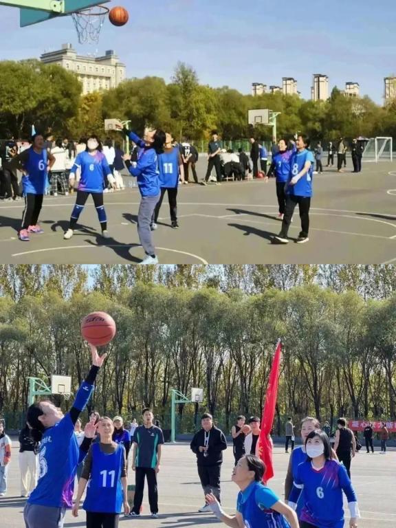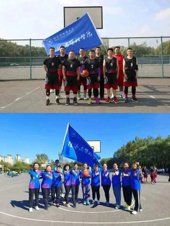 一个篮球一身球衣一腔热血一往无前金秋赛场展英姿阳光校园绽芳华秋天的阳光醇厚柔润伴着浪漫的秋阳经管男女教职工队伍以饱满的热情全力对战每一场比赛展现出新时代教职工良好的精神风貌
